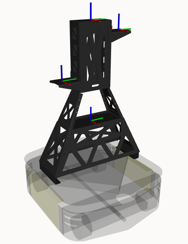 Payloads can be added to the tower using the links: tower_mid_link (at the center of the tower), tower_top_link (at the top of the tower), tower_left_shoulder_link (at the center of the left tower mount), and tower_right_shoulder_link (at the center of the right tower mount). The name of these links corresponds to the name parameter set in the robot.yaml.
