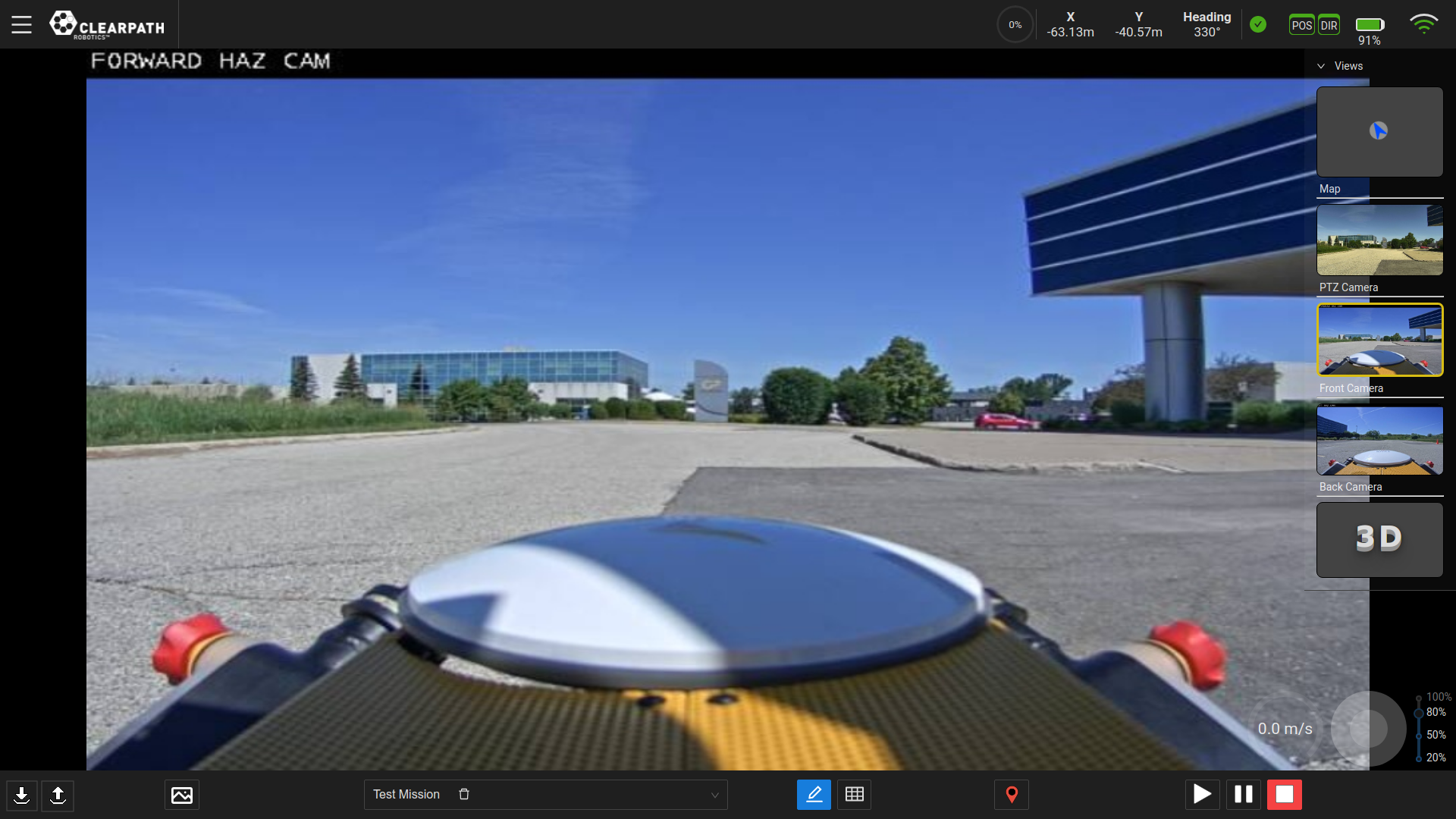 If PTZ and/or Front/Back camera(s) are included on the UGV, their feeds can be viewed through the UI and the PTZ can be controlled through the UI. If not, there will not be any PTZ, Front/Back view(s) in the list of available views.