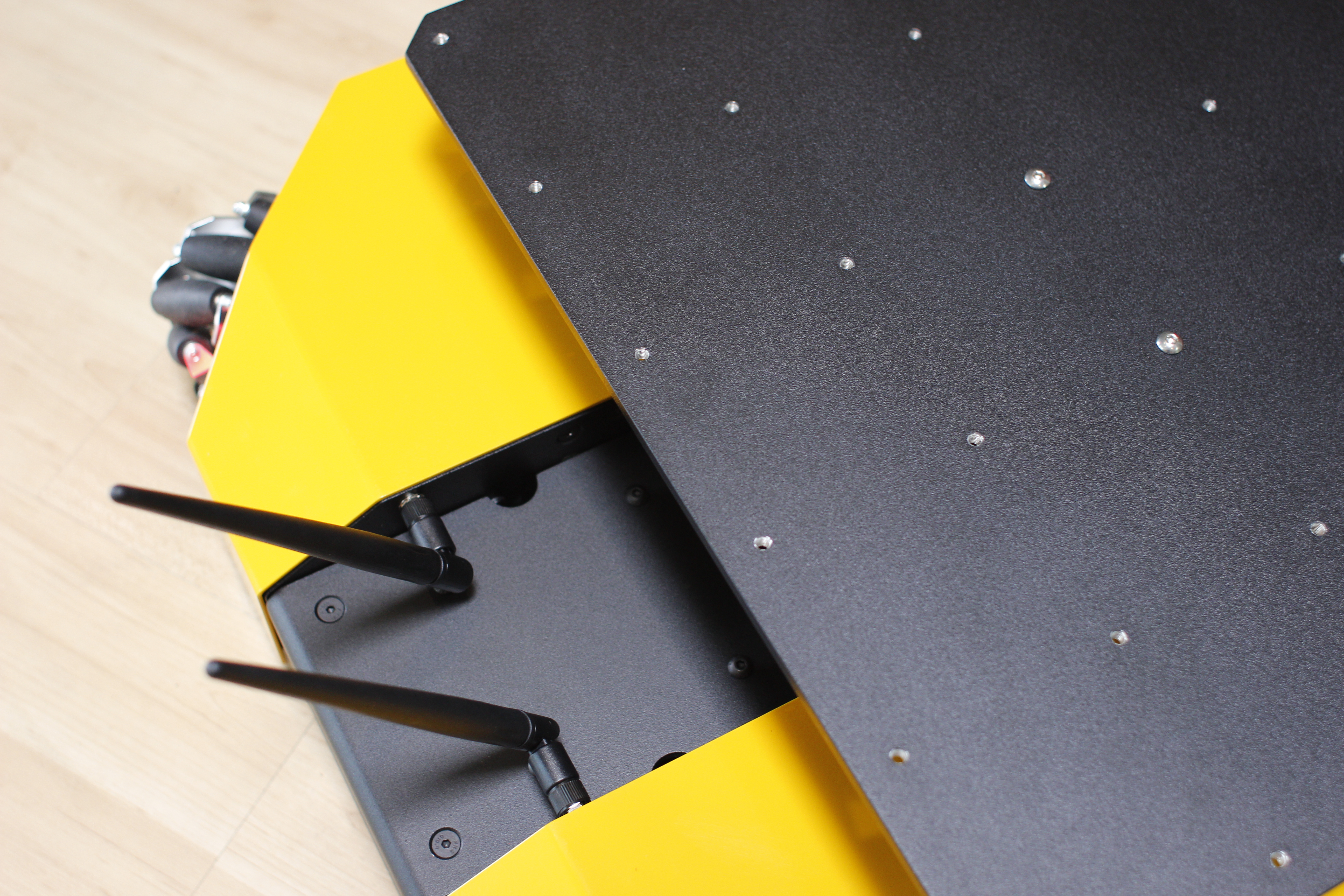 A Husky top plate, with PACS™ hardpoint A01 in the front-left of the robot, and G08 in the back-right