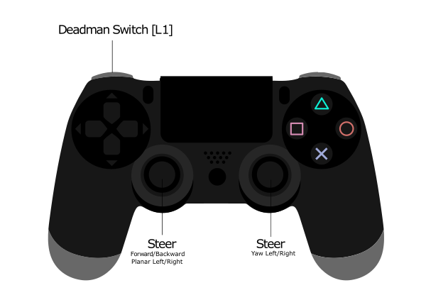 Hold the L1 trigger button (deadman switch) and push the left thumbstick forward to drive the Ridgeback. See the figure below for the Sony PS4 controls layout. If you are not seeing any action, refer to Support to get in touch with support.
