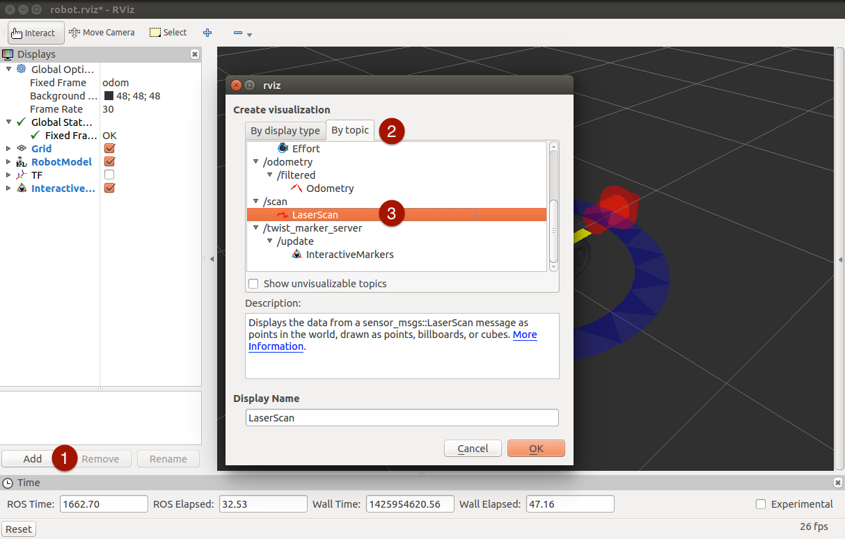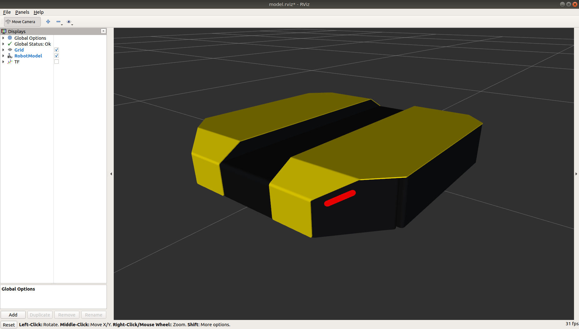 Dingo's URDF model can be visualized in RViz. Once you have installed the desktop software in an upcoming tutorial, you will be able to run: