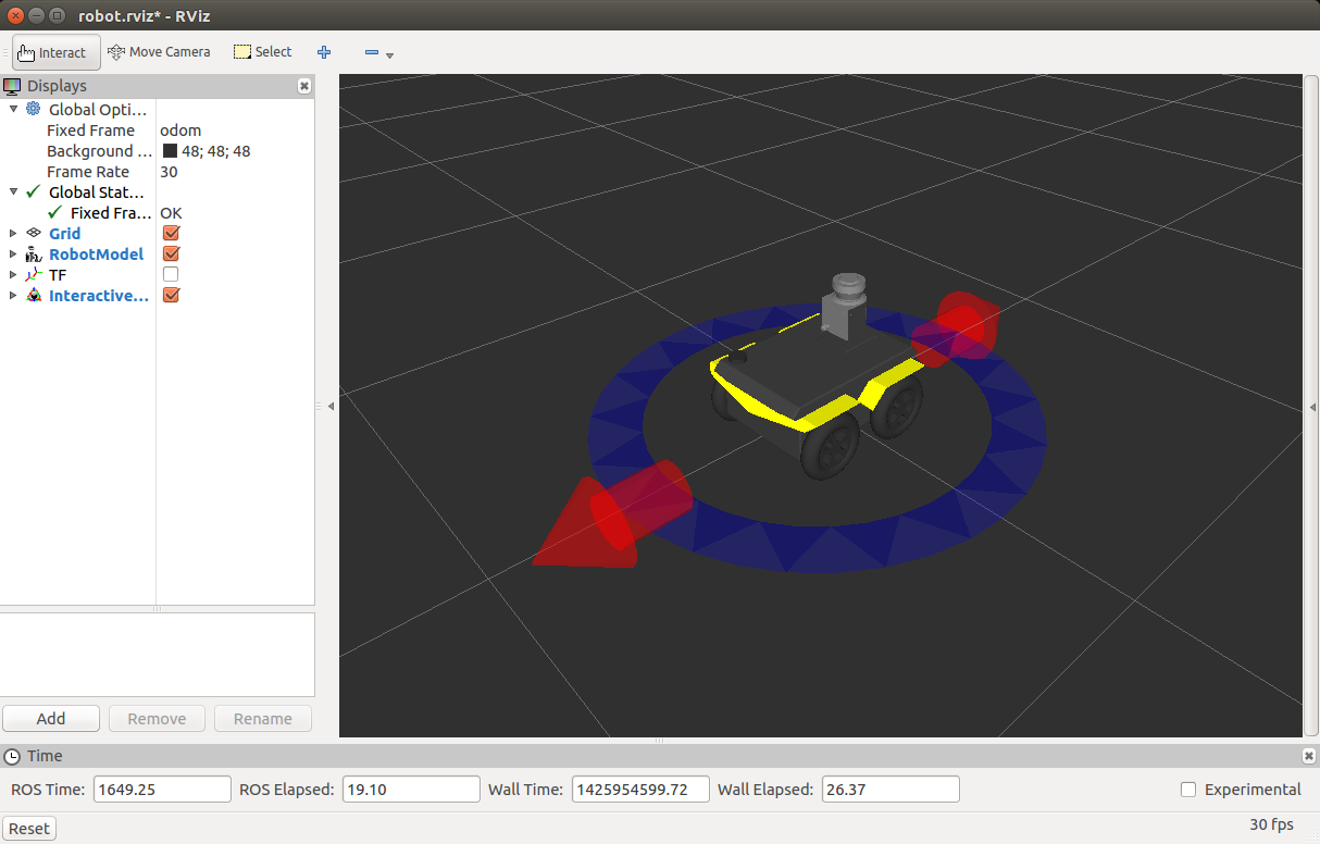 Jackal's URDF model can be visualized in RViz. Once you have installed the desktop software in an upcoming tutorial, you will be able to run: