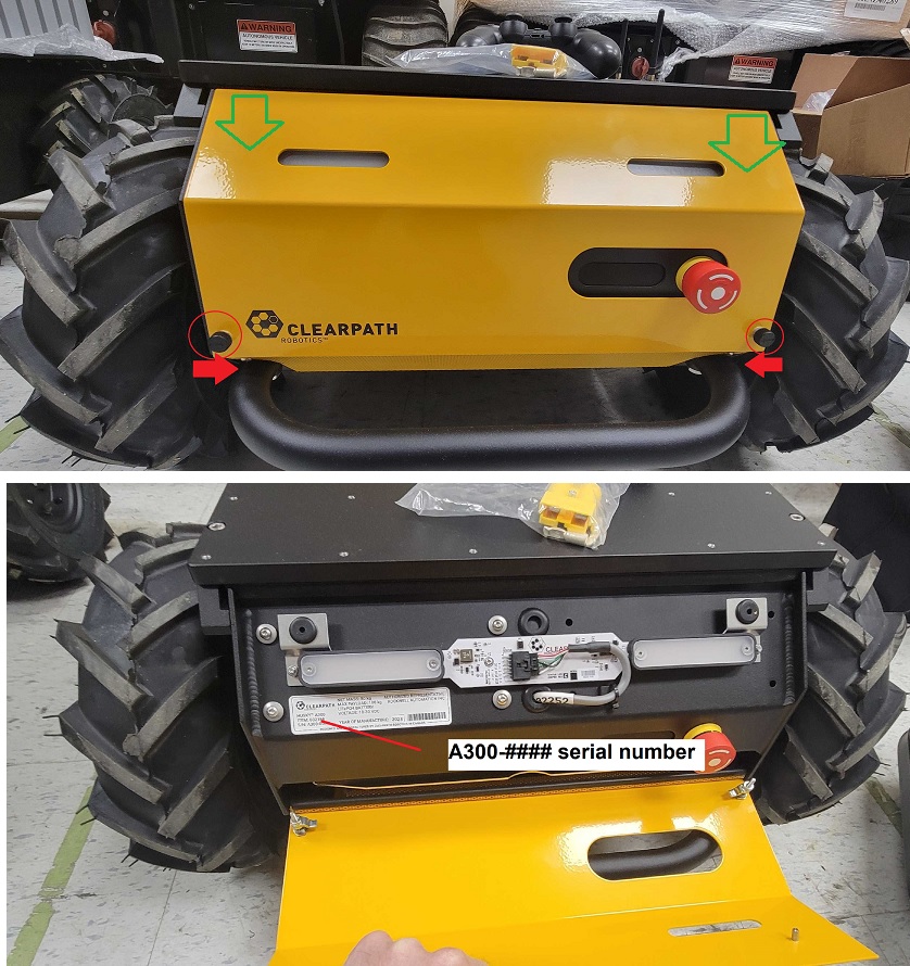Only original chargers from Clearpath Robotics should be used when charging the Husky A300 to avoid any damage to the batteries and to reduce hazards. Use proper personal protective equipment (PPE) if attempting to handle the batteries.