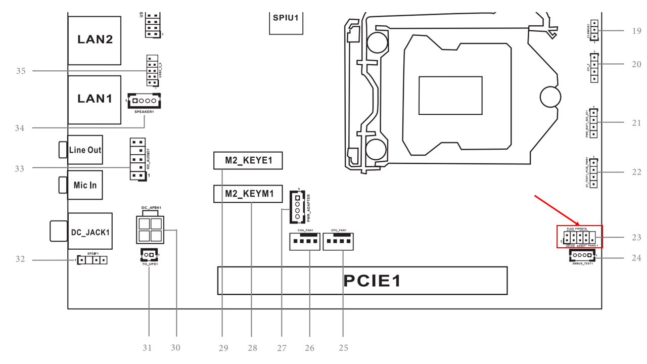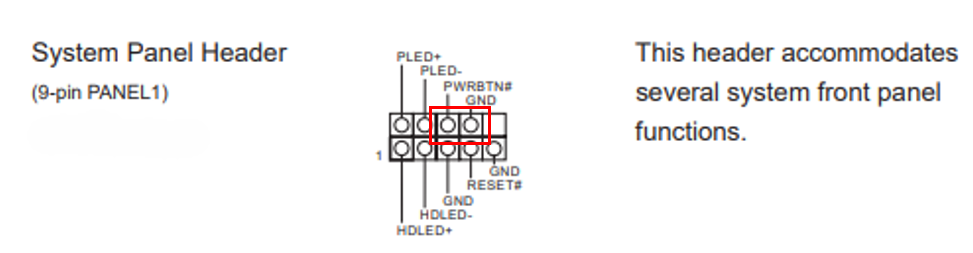 2. If the CPU fan is not spinning and there are no beeps at power on, use a paperclip to short the PWRBTN# and GND pins on the PANEL1 header on the motherboard. Remove the paperclip after one second.